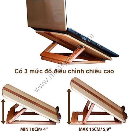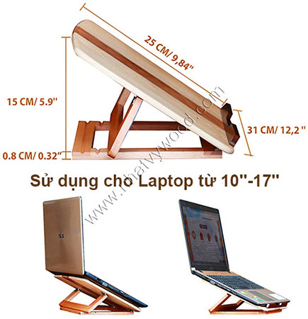 Bàn laptop có kích thước 310 x 250mm, gỗ dày 6mm thích hợp với laptop từ 14-17 inch, kệ có hai chân có thể xếp gọn nhưng kệ rất cứng vững và chịu lực tốt nên an toàn cho laptop của bạn.