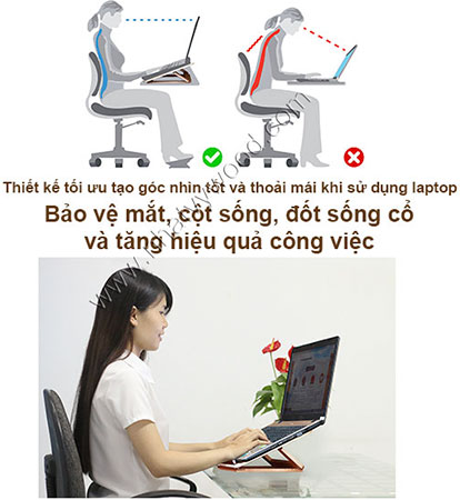 Khi sử dụng bàn kê laptop NVLP 05 sẽ giúp bàn phím của laptop nghiêng 200 so với mặt bàn, vì vậy khi bạn gõ bàn phím sẽ dễ dàng và nhanh hơn không cần phải khom lưng và không mỏi cổ dù phải làm việc với máy tính một thời gian dài. Lúc này màn hình laptop cao hơn nên mắt bạn luôn nhìn thẳng, nên ít thay đổi góc nhìn liên tục vì vậy sẽ giảm mỏi mắt so với không sử dụng kệ, vì vậy hiệu quả làm việc sẽ cao hơn. Tuy nhiên nếu bạn thường xuyên đánh văn bản nên kết hợp với kệ kẹp giấy đánh máy KS 22 để cho hiệu quả công việc cao hơn.