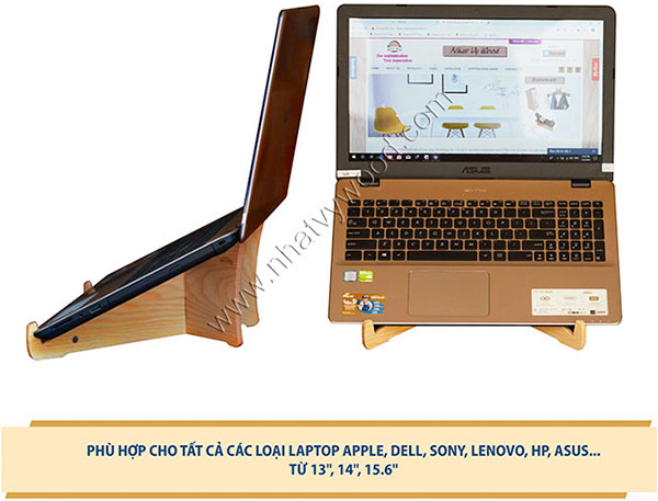 Kệ có kích thước 325 x 125mm, gỗ dày 7mm thích hợp với laptop từ 14-17 inch, kệ gồm hai miếng rời ráp lại với nhau, có thể xếp gọn nhưng kệ rất cứng vưng và chịu lực tốt nên an toàn cho laptop của bạn.