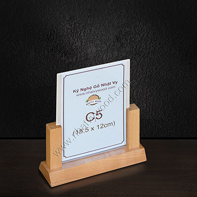 - Restaurant menu holder A5 - NV5104 được thiết kế làm standee để bàn sử dụng để giới thiệu sản phẩm, stan dee chân gỗ được thiết kế sang trọng và bền.