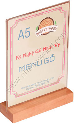 - Table menu holders for restaurants A5 được thiết kế làm tent card để bàn sử dụng để giới thiệu sản phẩm, tent card gỗ được thiết kế sang trọng và bền.