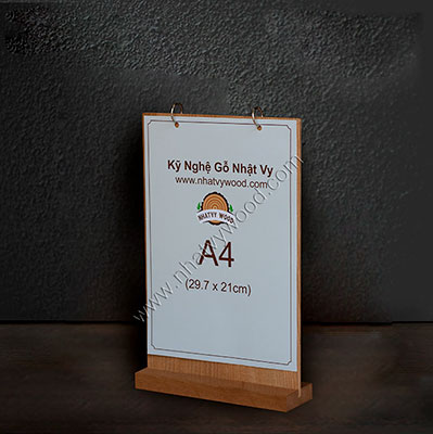 - Table top menu holders A4 - NV4103 được thiết kế làm tent card để bàn sử dụng để giới thiệu sản phẩm, tent card gỗ được thiết kế sang trọng và bền.